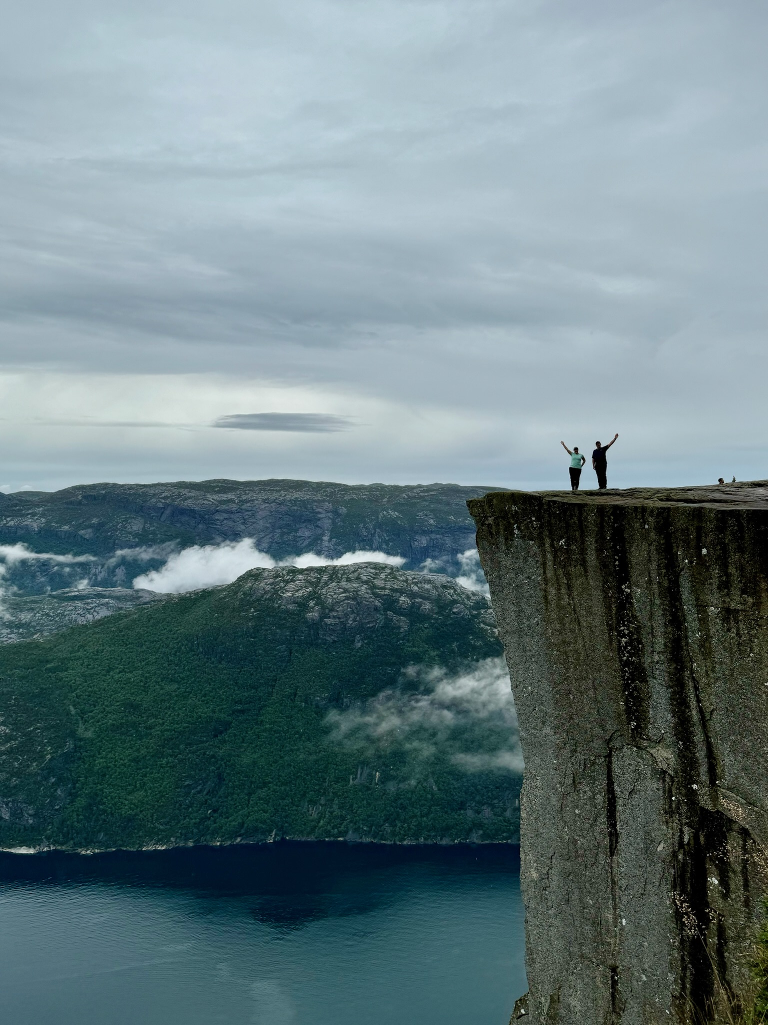 Reaching the top is a surreal experience. The rock’s flat surface juts out over the fjord, offering a jaw-dropping view of the fjord below. It’s no surprise that Pulpit Rock is one of Norway’s most photographed locations, as standing on the edge feels almost like being on top of the world. The fjord below is so vast and deep that it seems to stretch forever, with mountains rising sharply from the water’s edge. The sense of awe and accomplishment as you stand there is something words can hardly describe.